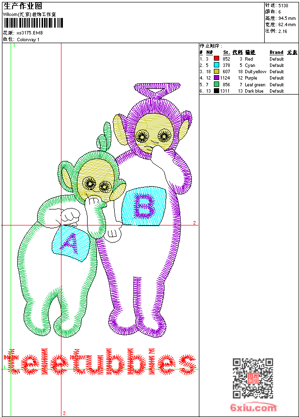 - 版带文件需绣花软件方可打开,可配色打印导出各种格式或直接上机绣。如无绣花软件可下载1:1模拟效果图。