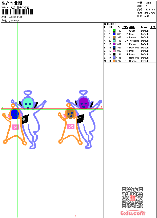 - 版带文件需绣花软件方可打开,可配色打印导出各种格式或直接上机绣。如无绣花软件可下载1:1模拟效果图。
