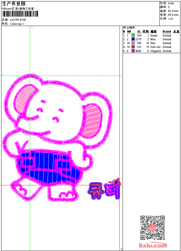 - 版带文件需绣花软件方可打开,可配色打印导出各种格式或直接上机绣。如无绣花软件可下载1:1模拟效果图。
