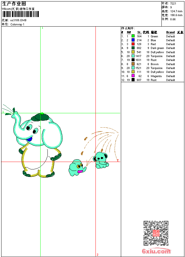 - emb花版参数: 大小:70.00 KB / 尺寸:199*125[毫米] / 针数:7221针 / 线色:9 / 格式:emb / 版本:9