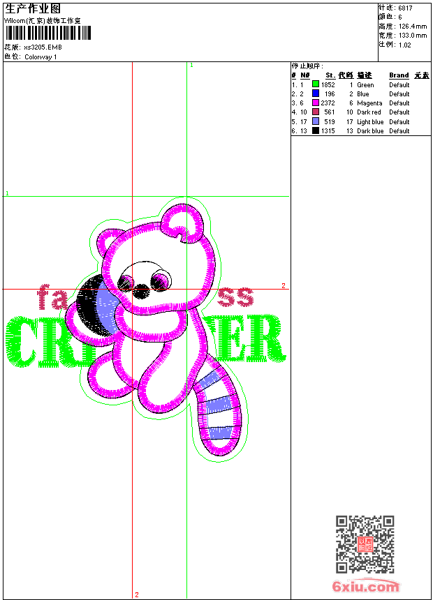- 版带文件需绣花软件方可打开,可配色打印导出各种格式或直接上机绣。如无绣花软件可下载1:1模拟效果图。