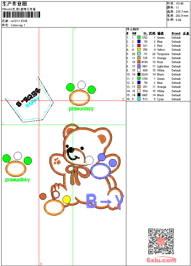 - 版带文件需绣花软件方可打开,可配色打印导出各种格式或直接上机绣。如无绣花软件可下载1:1模拟效果图。