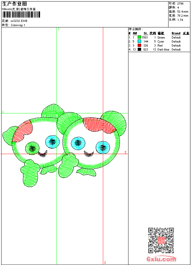 - 版带文件需绣花软件方可打开,可配色打印导出各种格式或直接上机绣。如无绣花软件可下载1:1模拟效果图。
