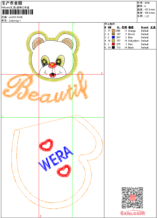 - 版带文件需绣花软件方可打开,可配色打印导出各种格式或直接上机绣。如无绣花软件可下载1:1模拟效果图。
