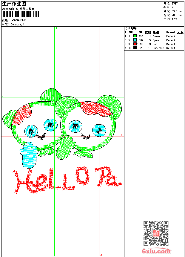 - 版带文件需绣花软件方可打开,可配色打印导出各种格式或直接上机绣。如无绣花软件可下载1:1模拟效果图。