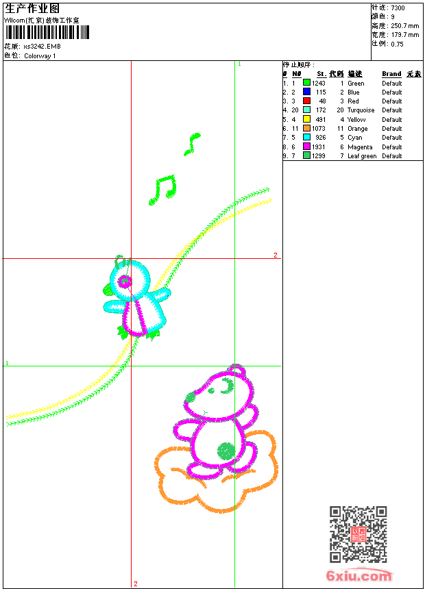 - 版带文件需绣花软件方可打开,可配色打印导出各种格式或直接上机绣。如无绣花软件可下载1:1模拟效果图。