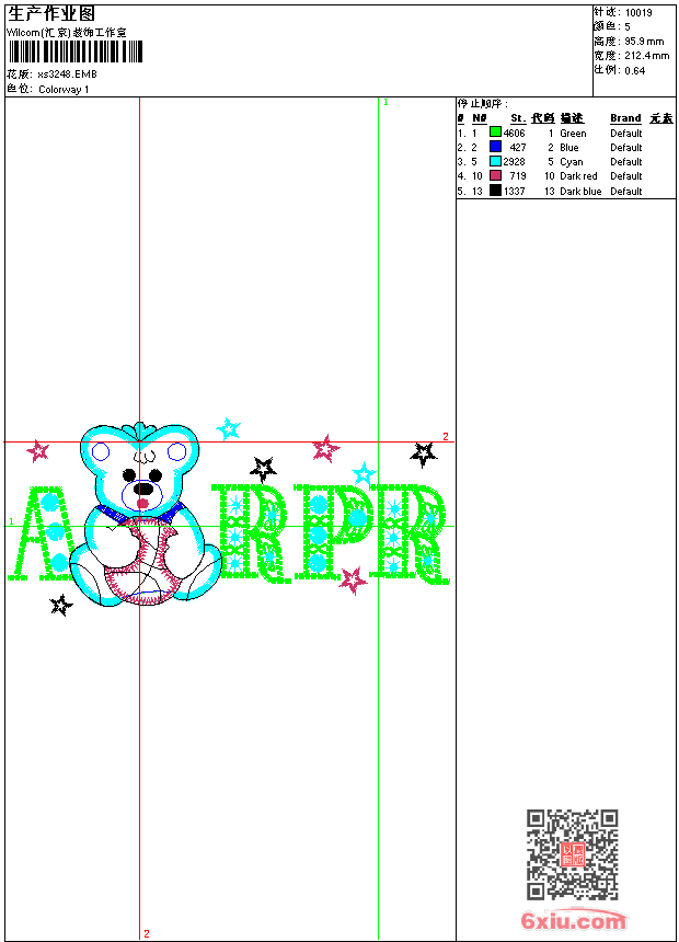 - 版带文件需绣花软件方可打开,可配色打印导出各种格式或直接上机绣。如无绣花软件可下载1:1模拟效果图。