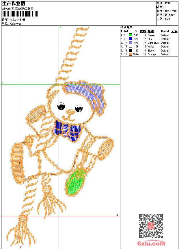 - 版带文件需绣花软件方可打开,可配色打印导出各种格式或直接上机绣。如无绣花软件可下载1:1模拟效果图。