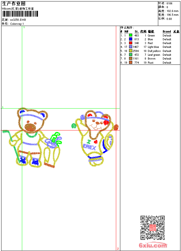 - 版带文件需绣花软件方可打开,可配色打印导出各种格式或直接上机绣。如无绣花软件可下载1:1模拟效果图。