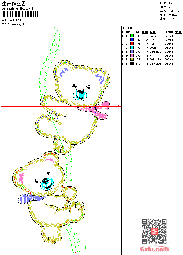 - 版带文件需绣花软件方可打开,可配色打印导出各种格式或直接上机绣。如无绣花软件可下载1:1模拟效果图。