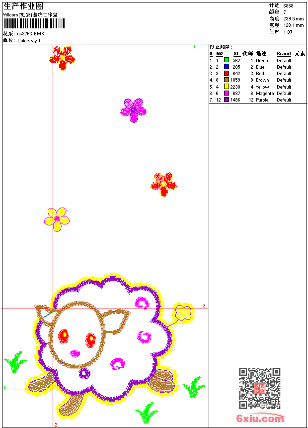 - emb花版参数: 大小:59.00 KB / 尺寸:128*240[毫米] / 针数:6888针 / 线色:7 / 格式:emb / 版本:9