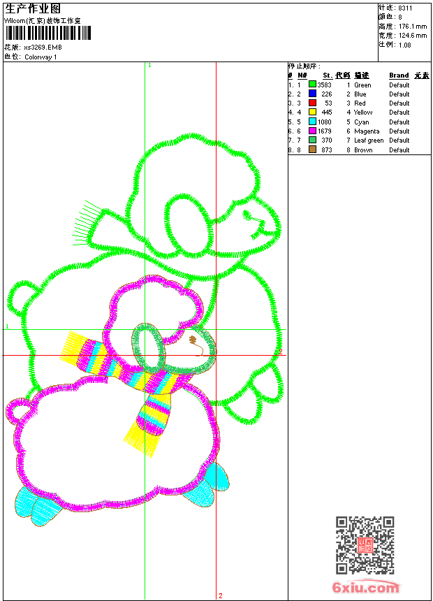 - 版带文件需绣花软件方可打开,可配色打印导出各种格式或直接上机绣。如无绣花软件可下载1:1模拟效果图。
