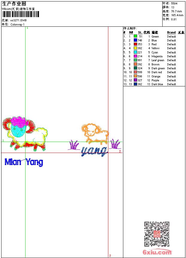 - emb花版参数: 大小:33.50 KB / 尺寸:165*71[毫米] / 针数:5504针 / 线色:13 / 格式:emb / 版本:9
