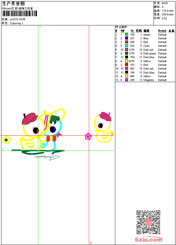- 版带文件需绣花软件方可打开,可配色打印导出各种格式或直接上机绣。如无绣花软件可下载1:1模拟效果图。