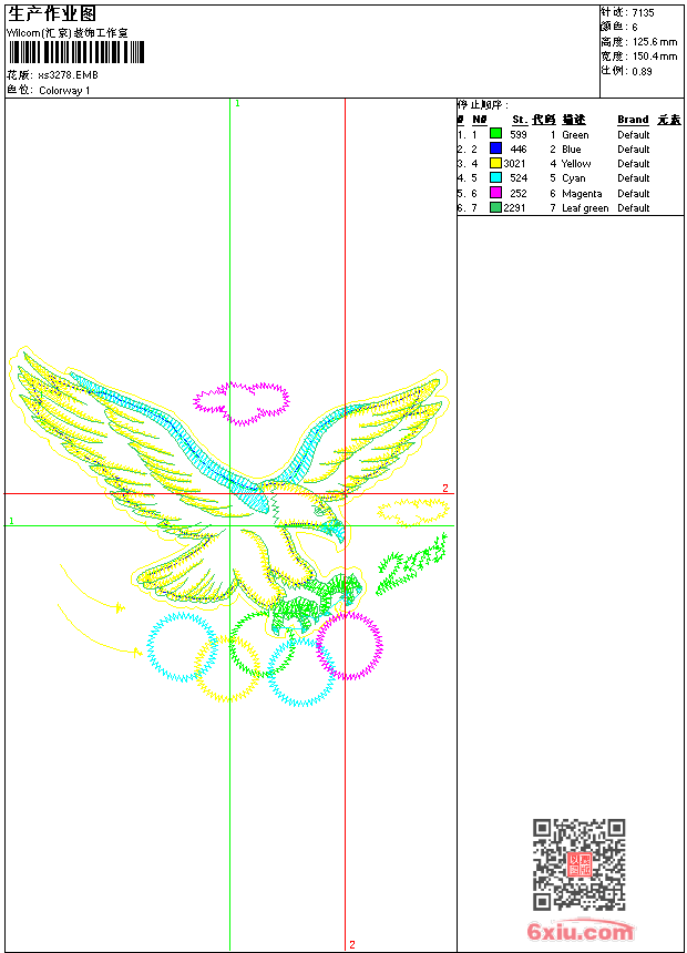 - 版带文件需绣花软件方可打开,可配色打印导出各种格式或直接上机绣。如无绣花软件可下载1:1模拟效果图。