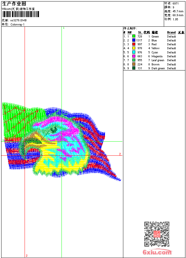 - emb花版参数: 大小:32.50 KB / 尺寸:69*46[毫米] / 针数:6971针 / 线色:9 / 格式:emb / 版本:9