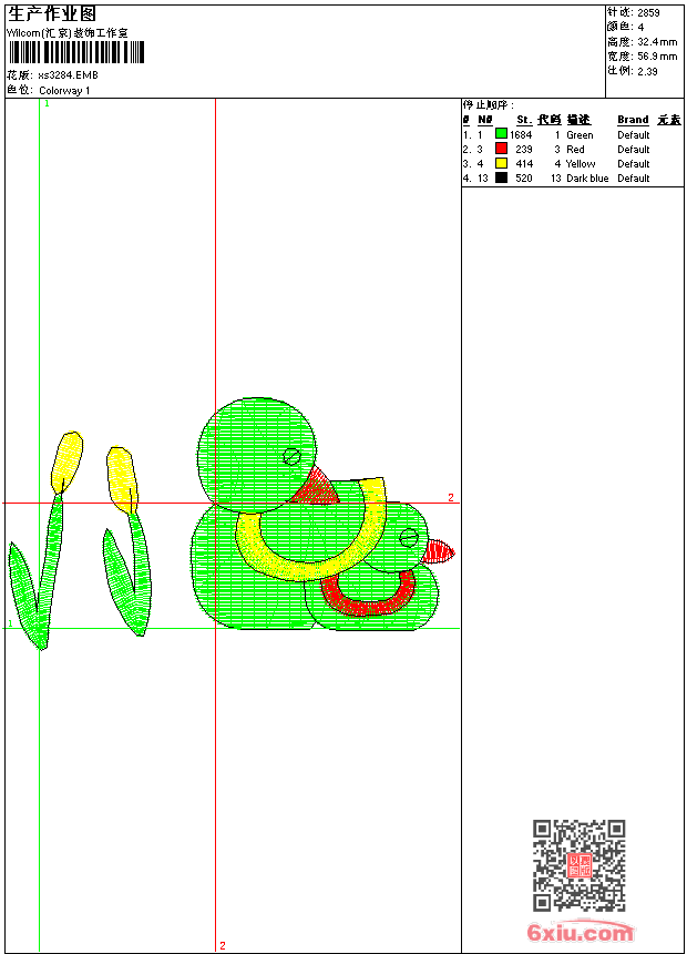 - 版带文件需绣花软件方可打开,可配色打印导出各种格式或直接上机绣。如无绣花软件可下载1:1模拟效果图。