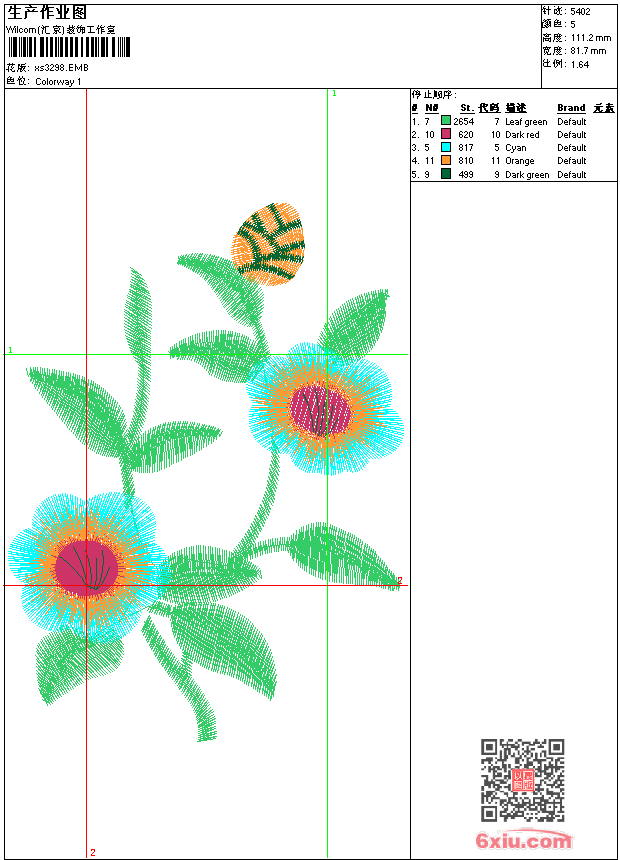 - 版带文件需绣花软件方可打开,可配色打印导出各种格式或直接上机绣。如无绣花软件可下载1:1模拟效果图。