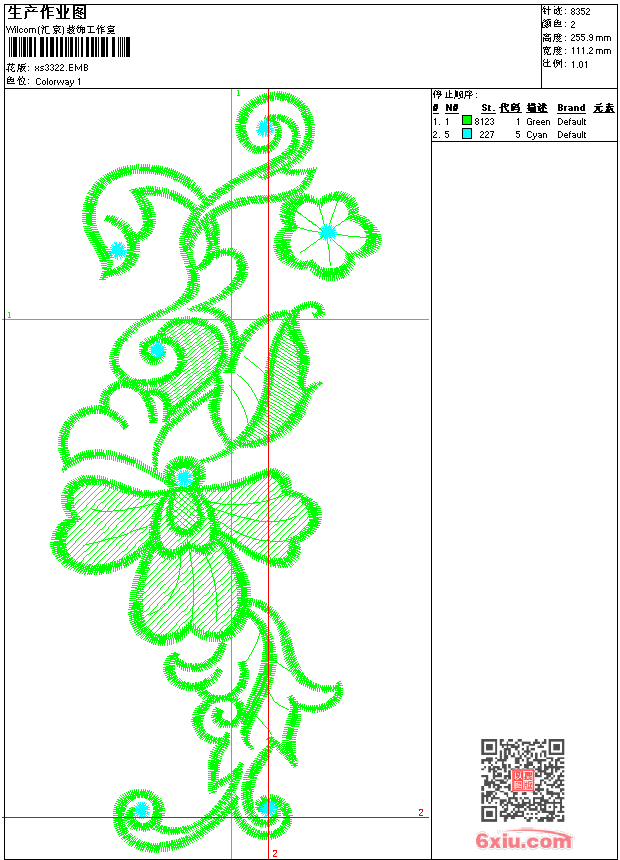 - emb花版参数: 大小:50.50 KB / 尺寸:111*256[毫米] / 针数:8352针 / 线色:2 / 格式:emb / 版本:9