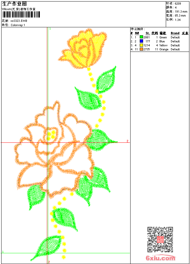 - 版带文件需绣花软件方可打开,可配色打印导出各种格式或直接上机绣。如无绣花软件可下载1:1模拟效果图。