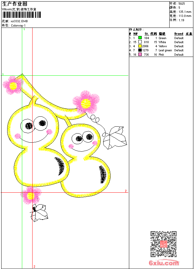 - emb花版参数: 大小:51.00 KB / 尺寸:113*135[毫米] / 针数:5025针 / 线色:5 / 格式:emb / 版本:9