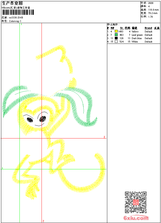 - 版带文件需绣花软件方可打开,可配色打印导出各种格式或直接上机绣。如无绣花软件可下载1:1模拟效果图。