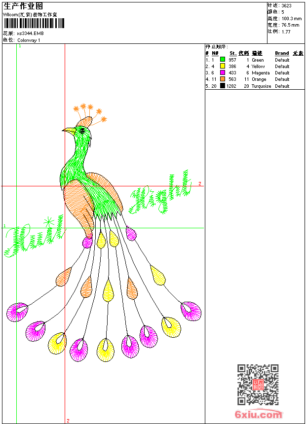- emb花版参数: 大小:43.50 KB / 尺寸:77*100[毫米] / 针数:3623针 / 线色:5 / 格式:emb / 版本:9