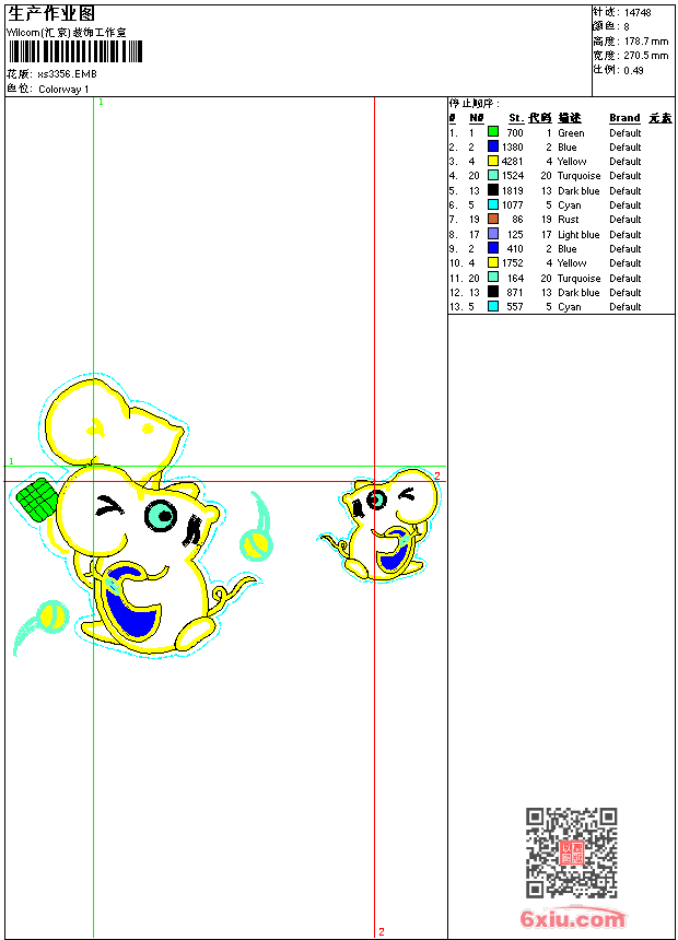- 版带文件需绣花软件方可打开,可配色打印导出各种格式或直接上机绣。如无绣花软件可下载1:1模拟效果图。