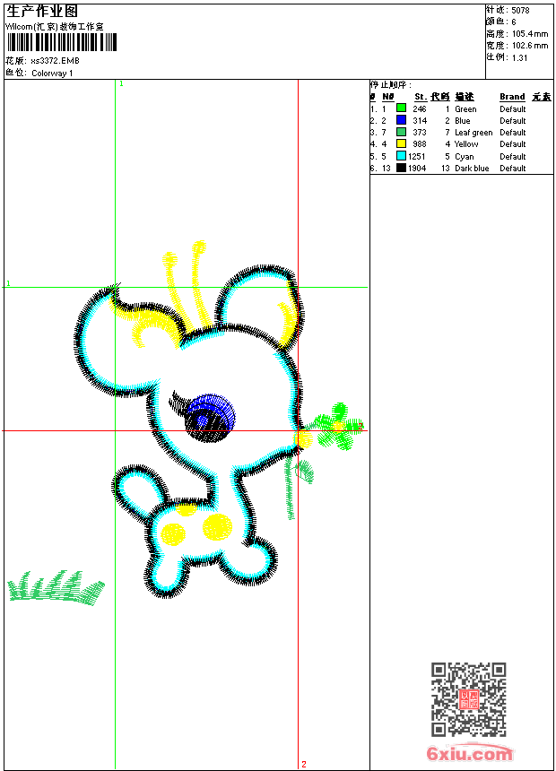 - 版带文件需绣花软件方可打开,可配色打印导出各种格式或直接上机绣。如无绣花软件可下载1:1模拟效果图。