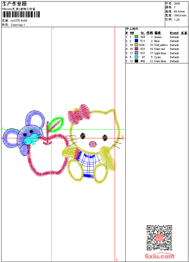 - 版带文件需绣花软件方可打开,可配色打印导出各种格式或直接上机绣。如无绣花软件可下载1:1模拟效果图。
