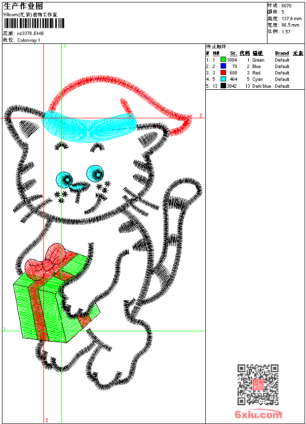 - 版带文件需绣花软件方可打开,可配色打印导出各种格式或直接上机绣。如无绣花软件可下载1:1模拟效果图。