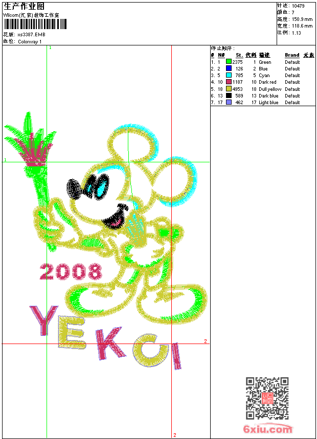 - 版带文件需绣花软件方可打开,可配色打印导出各种格式或直接上机绣。如无绣花软件可下载1:1模拟效果图。