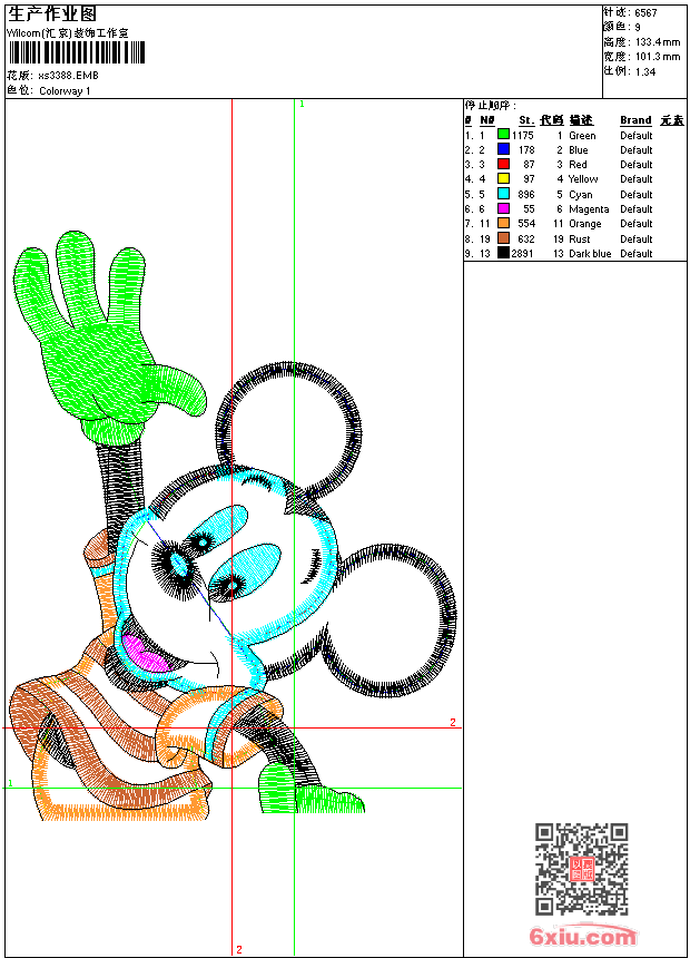 - 版带文件需绣花软件方可打开,可配色打印导出各种格式或直接上机绣。如无绣花软件可下载1:1模拟效果图。