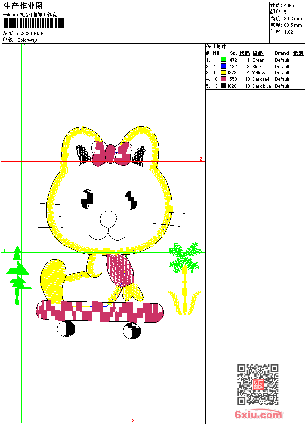 - 版带文件需绣花软件方可打开,可配色打印导出各种格式或直接上机绣。如无绣花软件可下载1:1模拟效果图。