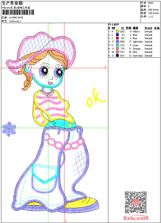 - 版带文件需绣花软件方可打开,可配色打印导出各种格式或直接上机绣。如无绣花软件可下载1:1模拟效果图。