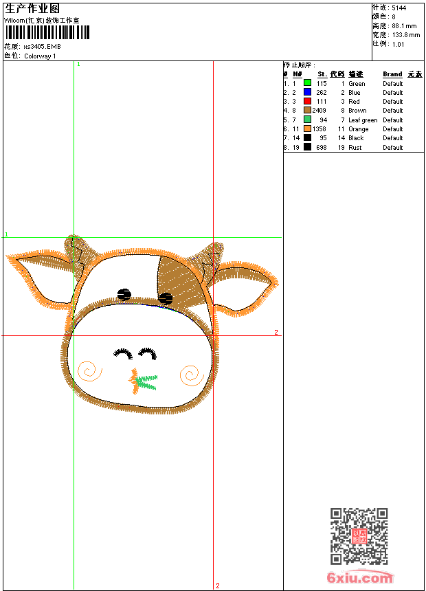 - 版带文件需绣花软件方可打开,可配色打印导出各种格式或直接上机绣。如无绣花软件可下载1:1模拟效果图。