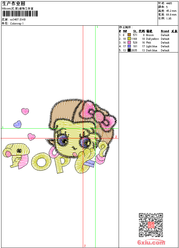 - 版带文件需绣花软件方可打开,可配色打印导出各种格式或直接上机绣。如无绣花软件可下载1:1模拟效果图。