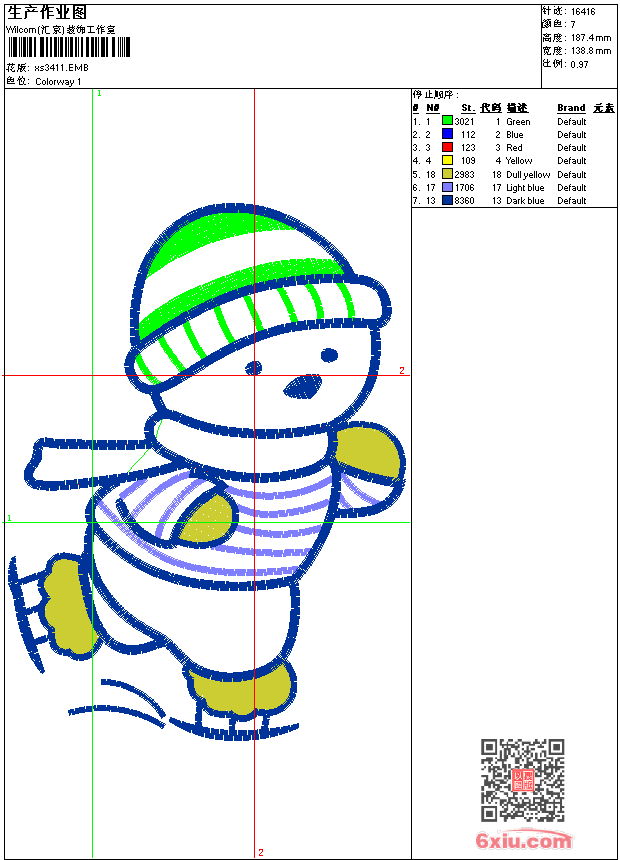 - emb花版参数: 大小:89.50 KB / 尺寸:139*187[毫米] / 针数:16416针 / 线色:7 / 格式:emb / 版本:9