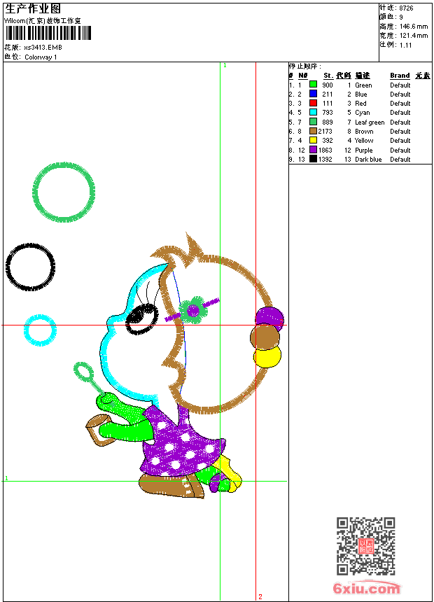 - 版带文件需绣花软件方可打开,可配色打印导出各种格式或直接上机绣。如无绣花软件可下载1:1模拟效果图。