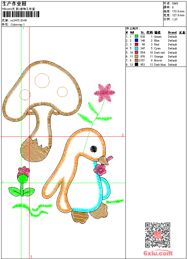 - 版带文件需绣花软件方可打开,可配色打印导出各种格式或直接上机绣。如无绣花软件可下载1:1模拟效果图。
