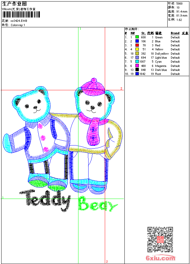 - 版带文件需绣花软件方可打开,可配色打印导出各种格式或直接上机绣。如无绣花软件可下载1:1模拟效果图。