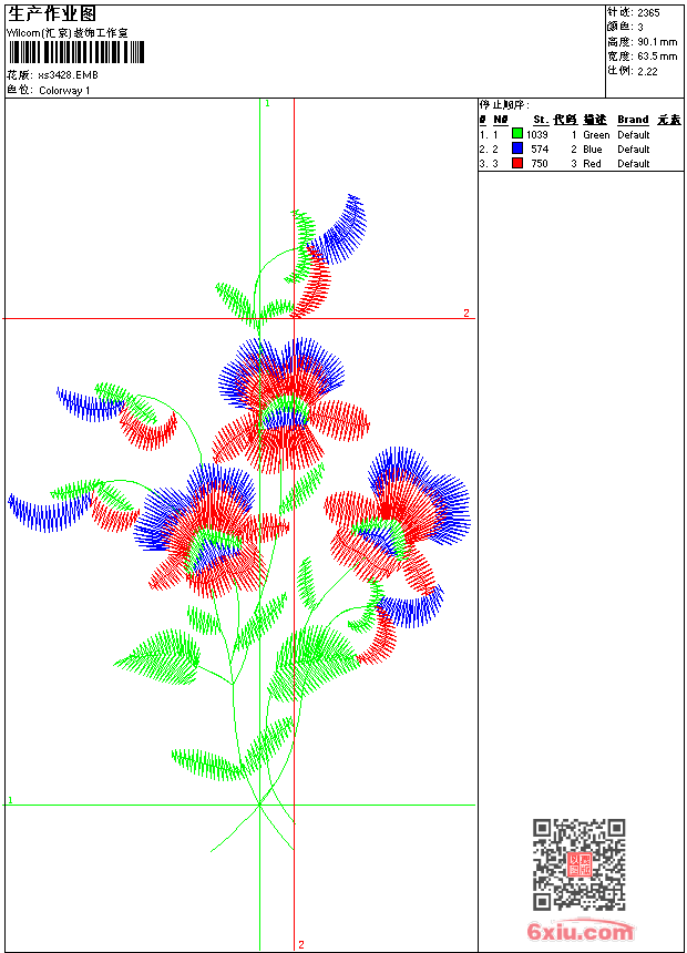 - emb花版参数: 大小:31.50 KB / 尺寸:63*90[毫米] / 针数:2365针 / 线色:3 / 格式:emb / 版本:9