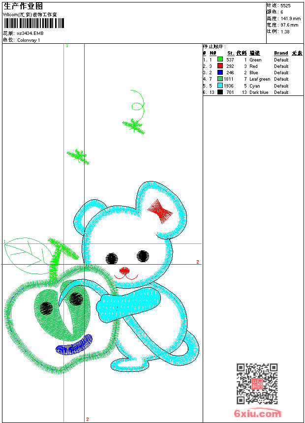 - 版带文件需绣花软件方可打开,可配色打印导出各种格式或直接上机绣。如无绣花软件可下载1:1模拟效果图。