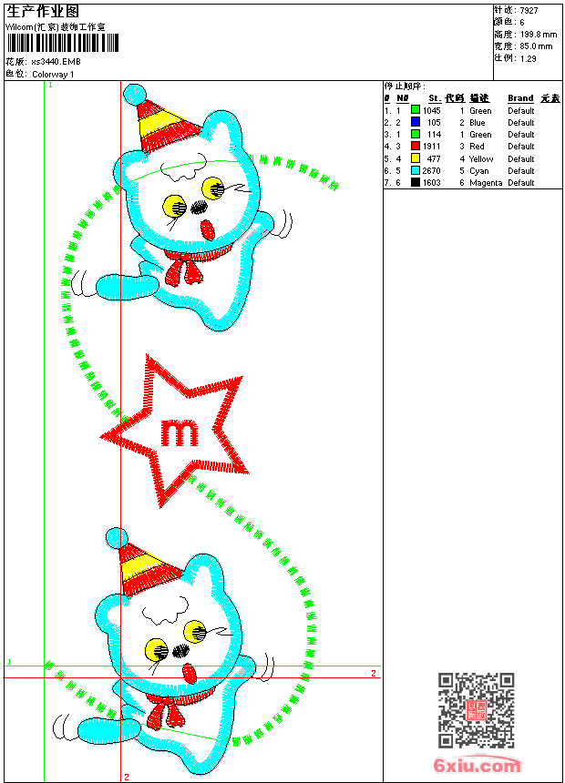 - 版带文件需绣花软件方可打开,可配色打印导出各种格式或直接上机绣。如无绣花软件可下载1:1模拟效果图。