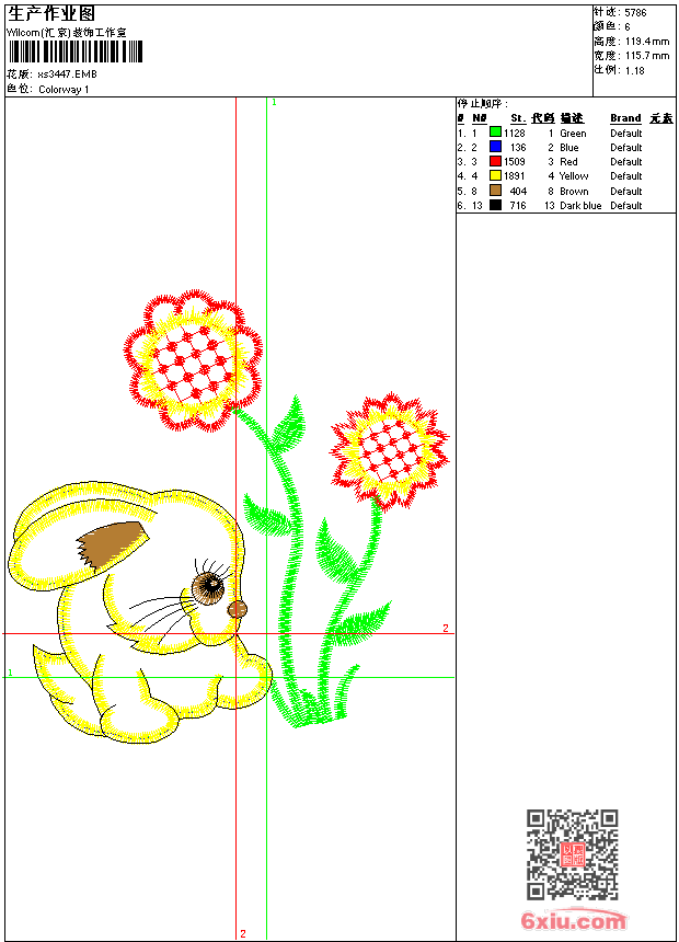 - emb花版参数: 大小:60.50 KB / 尺寸:116*119[毫米] / 针数:5786针 / 线色:6 / 格式:emb / 版本:9