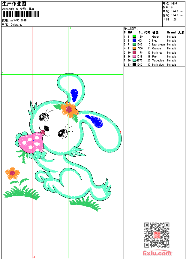 - 版带文件需绣花软件方可打开,可配色打印导出各种格式或直接上机绣。如无绣花软件可下载1:1模拟效果图。