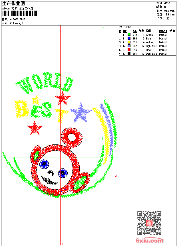- 版带文件需绣花软件方可打开,可配色打印导出各种格式或直接上机绣。如无绣花软件可下载1:1模拟效果图。