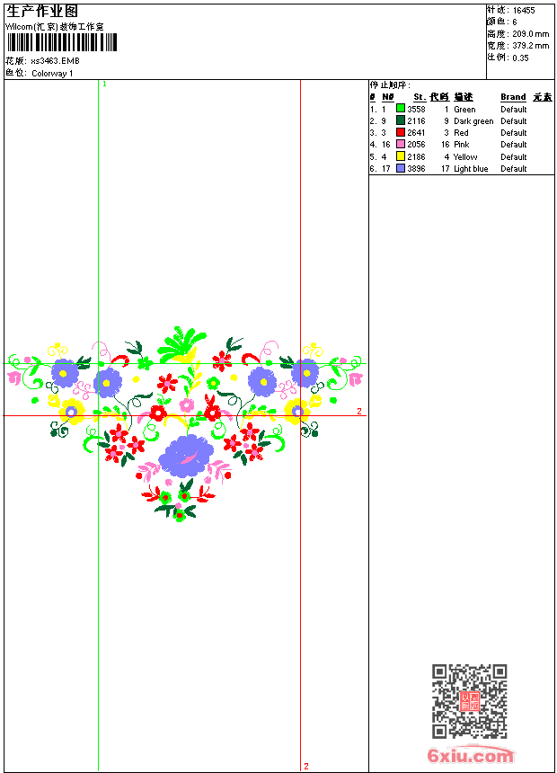 - emb花版参数: 大小:109.50 KB / 尺寸:379*209[毫米] / 针数:16455针 / 线色:6 / 格式:emb / 版本:9