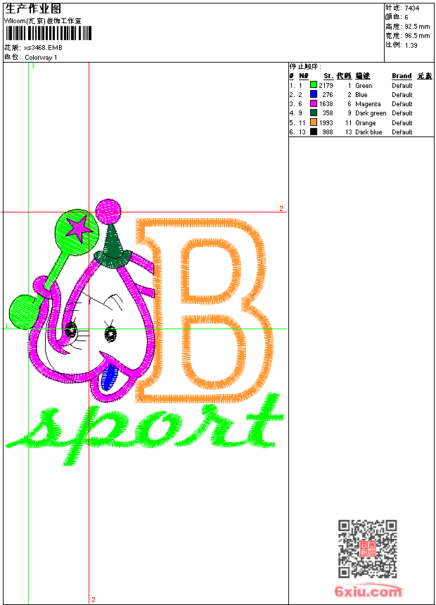 - 版带文件需绣花软件方可打开,可配色打印导出各种格式或直接上机绣。如无绣花软件可下载1:1模拟效果图。
