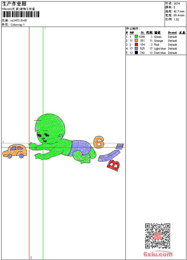 - 版带文件需绣花软件方可打开,可配色打印导出各种格式或直接上机绣。如无绣花软件可下载1:1模拟效果图。